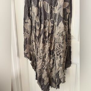 So soft. Cotton rayon blend. Flowers are on the back. Raw hem look. Beautiful