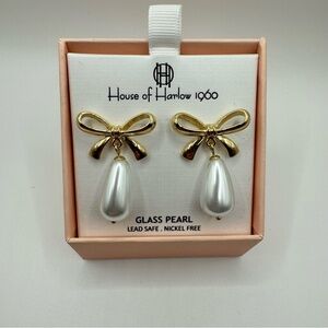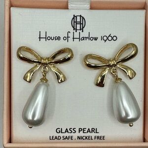 House of Harlow 1960 Gold Bow and Pearl Drop Earrings