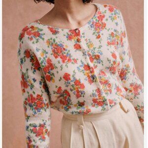 NWT Sezane Juno Cardigan XXS/XS Sweater Reversible Floral Ivory Jardin Secret