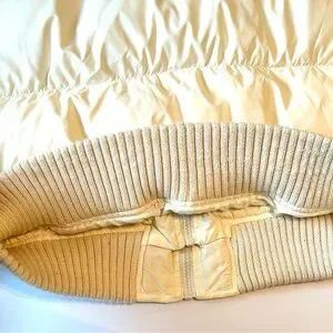 In very nice preloved condition. The only flaw on coat is the inside sweater area on bottom of jacket has minimal piling from rubbing on clothes. It’s a really nice coat.