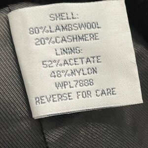 Ann Klein women’s black wool and Cashmere blend pea Coat. Two side pockets three buttons closure fully lined. It made of 80% lam wool and 20% cashmere. Siz 10 pit to pit 20.5” length 36.5” sleeve 24.5” shoulder to shoulder 17” . Pre owned used condition. It has few pin holes at the back one on the sleeve little bigger