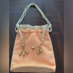 Women’s Luxuries Pearl &glass beads embellished potli bags in peach color