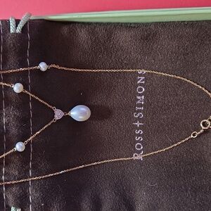 Ross Simons 20” Cultured Pearl and Diamond Accent Necklace 14K Gold Delicate