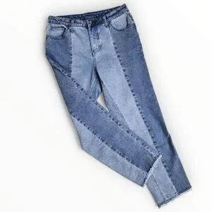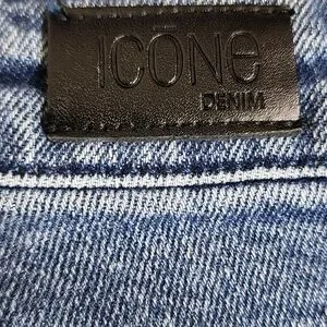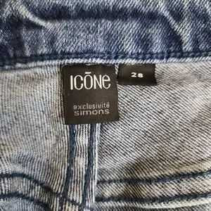 Trendy blue denim jeans by Icône (Simons). Perfect for casual wear while looking cool and chic! Super comfortable. Gorgeous two-tone denim design, high-rise and raw hem style. In excellent pre-owned condition with normal wash wear.