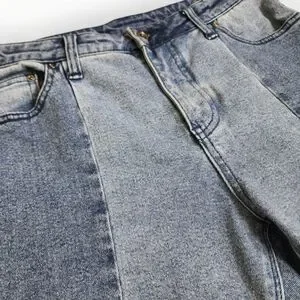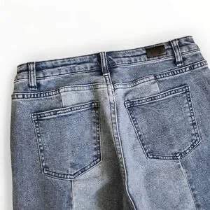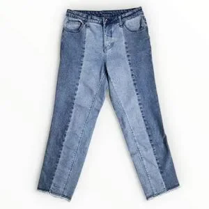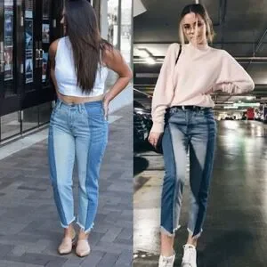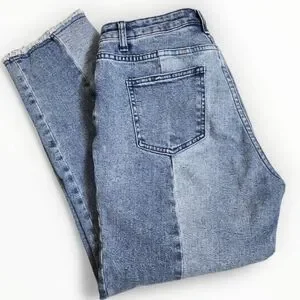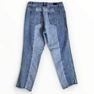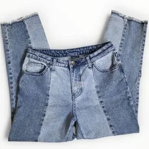Two Toned Denim Mom Jeans Size 28 High Waisted Raw Hem Cropped