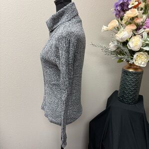 Cozy and elegant Sundance gray marled ribbed turtleneck sweater in size PM, crafted in a luxe cotton–silk blend for breathable softness and perfect Fall/Winter layering. Features a classic high neck, fitted silhouette, and stretchy knit—great for work, casual wear, or chilly weekend outfits. A timeless neutral essential that elevates cold-weather wardrobes.