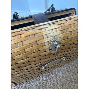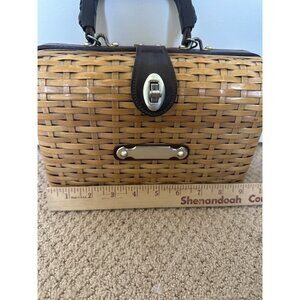 Vintage Basket Handbag Purse MCM Leather Handle Quality Clasp Engraving Plate