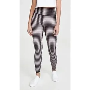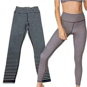 Stylish high-waisted leggings with a striped pattern. Perfect for casual wear or workouts.