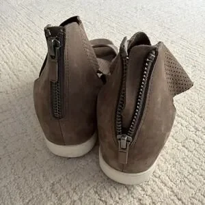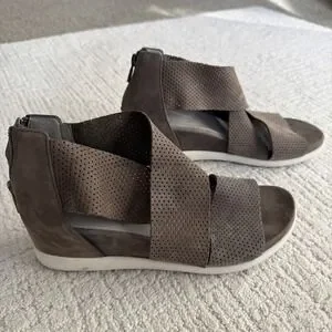 Eileen Fisher Taupe Gray Strap Platform Sandal Shoe Women's 8 Suede Perforated