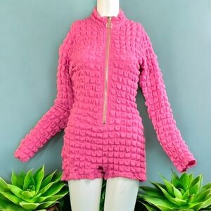 Barbie pink, body hugging long sleeve romper!