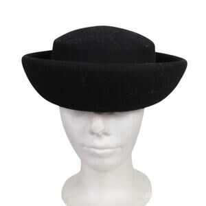 Vintage 80s Belvedere Black Wool Sailor Hat Dixie Cup Rolled Brim