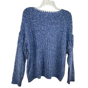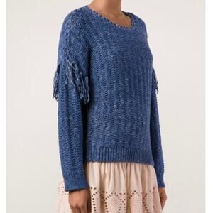 Ulla Johnson Blue Fringe Sweater Size M Arquette Boho Casual 100% Cotton