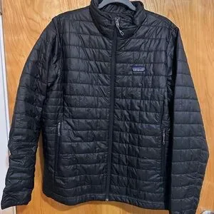 Experience warmth with the Patagonia puffer. Sleek black design. Perfect for outdoor adventures or cold weather outings.