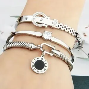 Elegant silver bracelet with Roman numeral charm. Stylish and timeless.