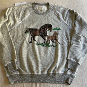 The Great. The College Sweatshirt in Heathered Grey Running Horse Graphic. Sz 2.