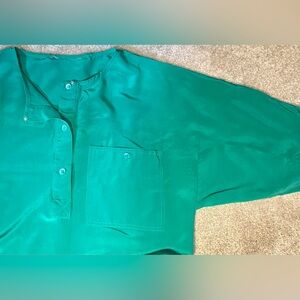 Green silk short sleeve dress
