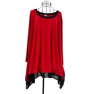 Upgrade your wardrobe with this stylish red and black long sleeve top. Perfect for any occasion, this top combines comfort and elegance effortlessly.