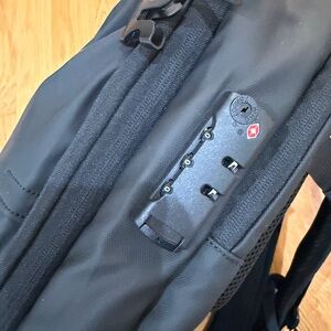 NWOT Vacuum Seal Swiss Lock Black Travel Backpack with Pump