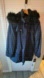 Elegant dark blue ski jacket with plush faux fur hood. Ideal for winter adventures.Pit Pit 23 1/2