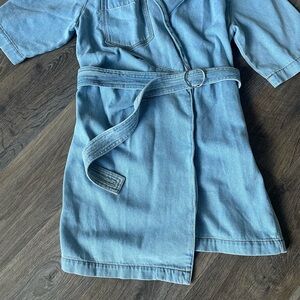Nanushka Italian Denim Wrap Mini Dress Belted Short Sleeve Blue Size S boho