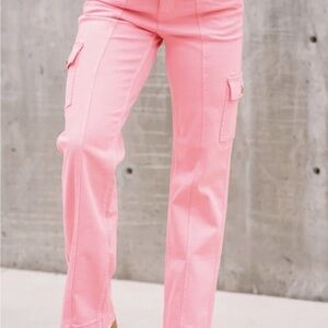 Judy Blue Jeans Womens 13/31 Pretty in Pink High Rise Cargo Straight Leg Stretch