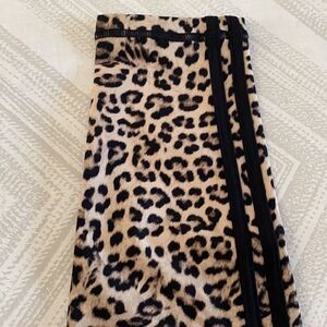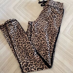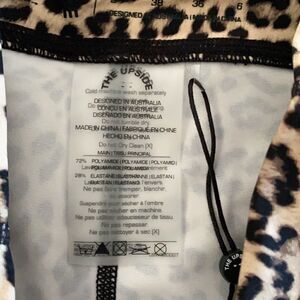 The Upside Women’s Leopard Yoga Leggings. Double side stripes. Tie at waist. 4 way stretch. Quick drying. Made of polyamide and elastane. Inseam 28”. NWT.