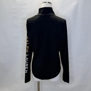 Color: Black with gold-toned zipper and gold "LRL" chest logo; "RALPH LAUREN" text down the sleeve in gold and white.