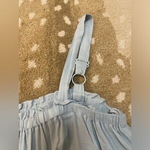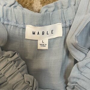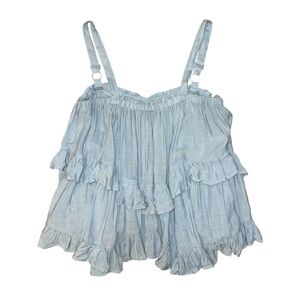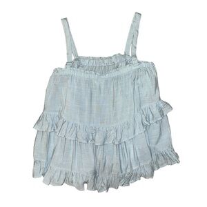 Mable light blue ruffle tank top women’s size large. Tank top is in fantastic preowned condition with no rips, holes, or stains. Straps are adjustable. Made out of 100% cotton and made in China.