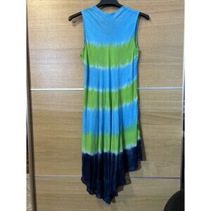 Jessica Taylor sleeveless Dress in Multicolor blue and green stripes with a Tie Dye look
