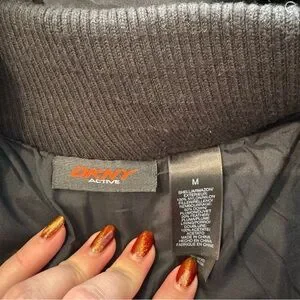 DKNY active Black Puffer Jacket with Faux Fur Trim women medium