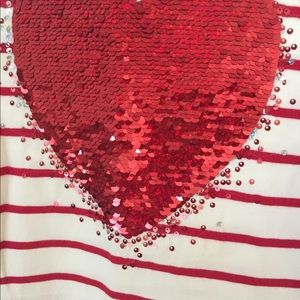 H&M Girl’s long sleeve shirt-“flippy” style heart red & white striped Valentine