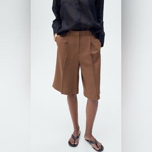 NWT MANGO Women's Linen-Blend Suit Bermuda Shorts