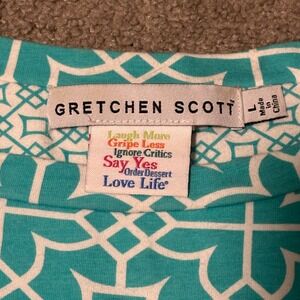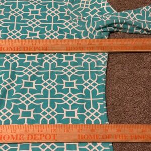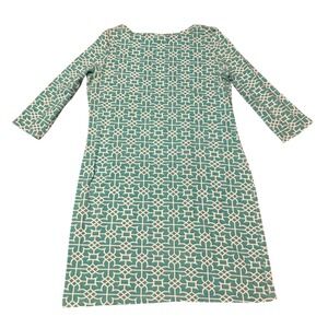 Gretchen Scott Teal White Geometric Print 3/4 Sleeve Knit Dress Size L