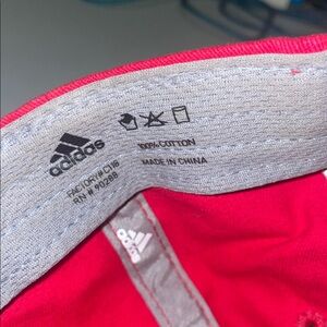 Bold red Adidas cap featuring a white logo. Perfect for casual wear.