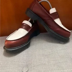 DR MARTIN PENTON MADE IN ENGLAND loafers A two-tone statement. Our refined Penton loafer handmade in our Northamptonshire factory from premium Classic Calf leather contrasted white Smooth leather across the vamp. Each shoe is fitted with a subtle DM's gold penny. Set on a DMS sole with a discreet plain welt.
