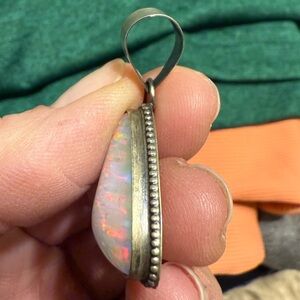 This stunning opal pendant features a captivating blend of colors, set in a sleek silver frame. Perfect for adding a touch of elegance to any outfit.