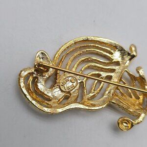 Vintage Gold Tone Brooch With Crystal Accents Intricate Poodle Dog By New View