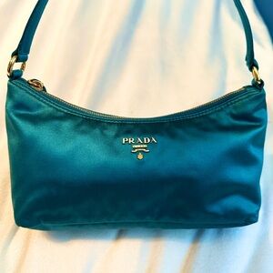 PRADA Satin Mini Hobo Bag Purse in Aqua Teal RARE with COA Authentic