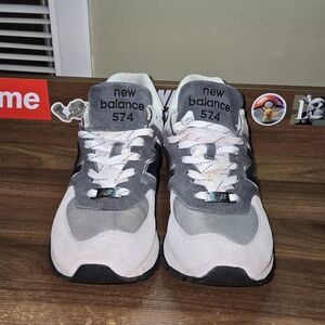 Classic New Balance sneakers with a white and black color scheme. Perfect for casual wear. These are lightly used. No box.