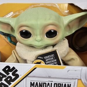 10 SOUND EFFECTS: Kids can squeeze The Child Talking Plush Toy’s soft body to hear adorable vocal sounds from the character featured in the Disney Plus series The Mandalorian! We dare you not to melt!