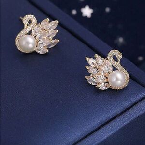 Elegant Gold plated and Silver Swan Pearl Earrings nwt