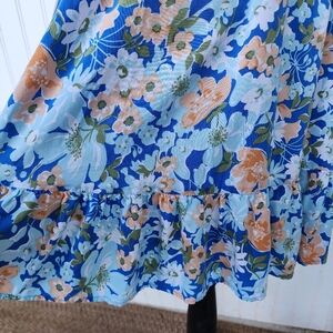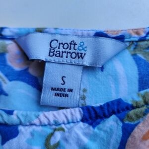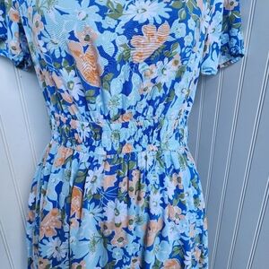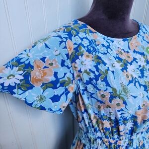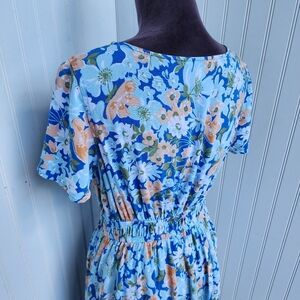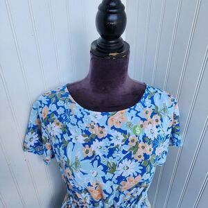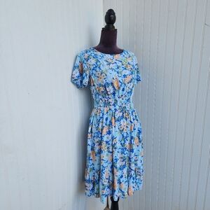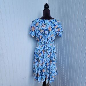 Croft & Barrow WomensBlue Orange Floral Dress Short Sleeve Elastic Waist Sz S