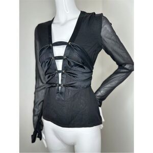 Gucci by Tom Ford 2003 black bondage lace silk top