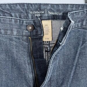 This product is a pair of Liz Claiborne jeans for women in size 22W. The jeans are blue, made of denim, and feature a classic bootcut style. They have a 12-inch rise, a 31-inch inseam, and a 46-inch waist size. The jeans also have a zip and button closure, a 5-pocket design, and are machine washable. Perfect for all seasons, these plus-size jeans are a versatile addition to any wardrobe, offering comfort and style with a touch of 90s-inspired charm.