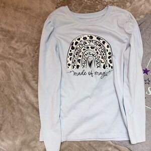 Keywords: graphic tee, long sleeve, kids fashion, childrenswear, cute tops, playwear, casual outfits, tween style, girls apparel, rainbow print, star graphic, heart print, dream big, magic theme
