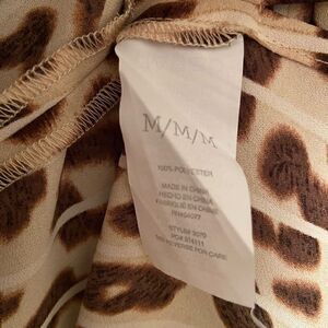 Tan sleeveless top with leopard print and stripes. Exposed back zip. Cutouts along collar. Careerwear.