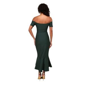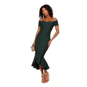NEW Lulus How Much I Care Dark Green Off-the-Shoulder Midi Dress Sm #1577