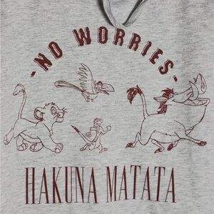 Disney Hoodie Gray Sweatshirt “No Worries Hakuna Matata” Size M NWOT