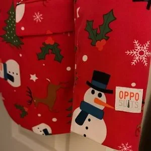 OppoSuits Red Christmas Suit with Snowman and Tree Design