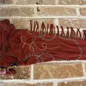 Long sleeve t-shirts with embroidery, stud and fringe detail.